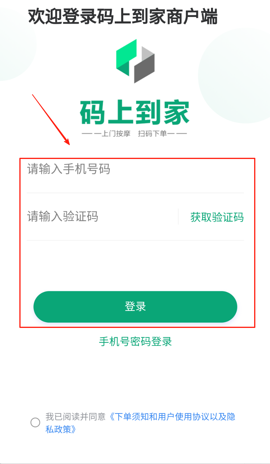 2、验证码登录在手机号框填号码,点蓝色获取验证码按钮收短信,填完验证码再勾协议框点登录呀。
