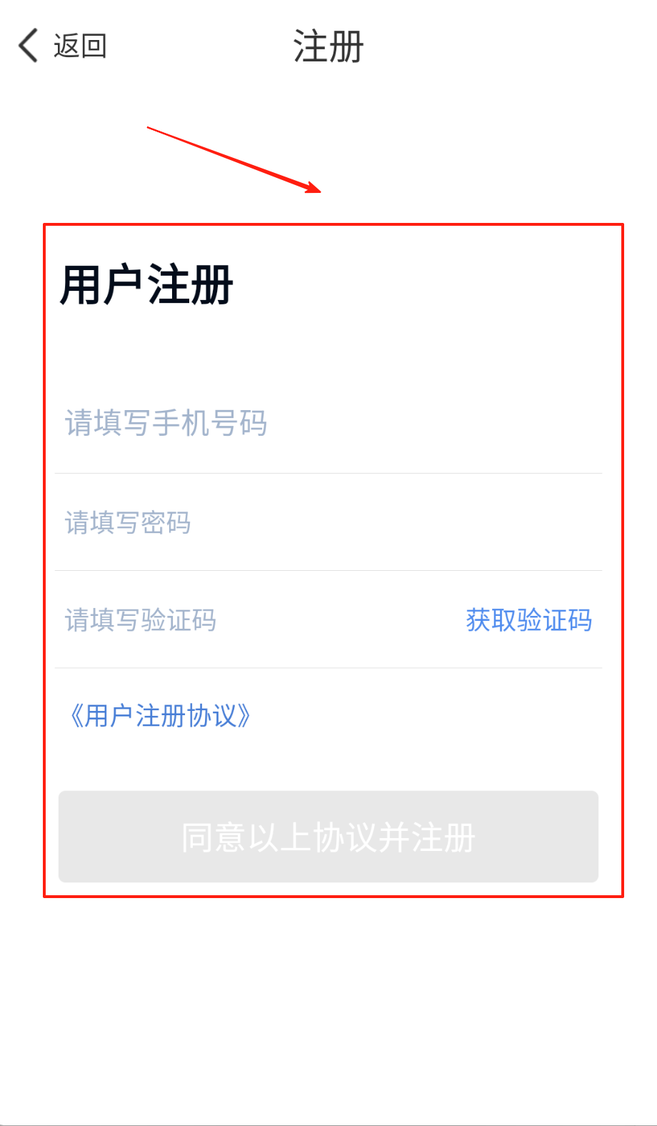 2、注册时填完手机和密码栏,收验证码注意看手机信息,关键点必须勾用户协议框再点注册按钮哦。