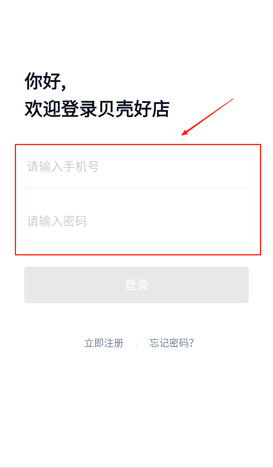3、登录页两个框分别输号码和密码,确认无误点灰色登录按钮,忘记密码看蓝色字找入口啦。