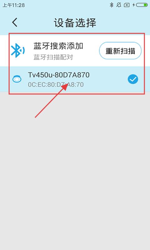 2、进入【设备选择】页,可蓝牙搜索添加设备,点击对应设备配对。