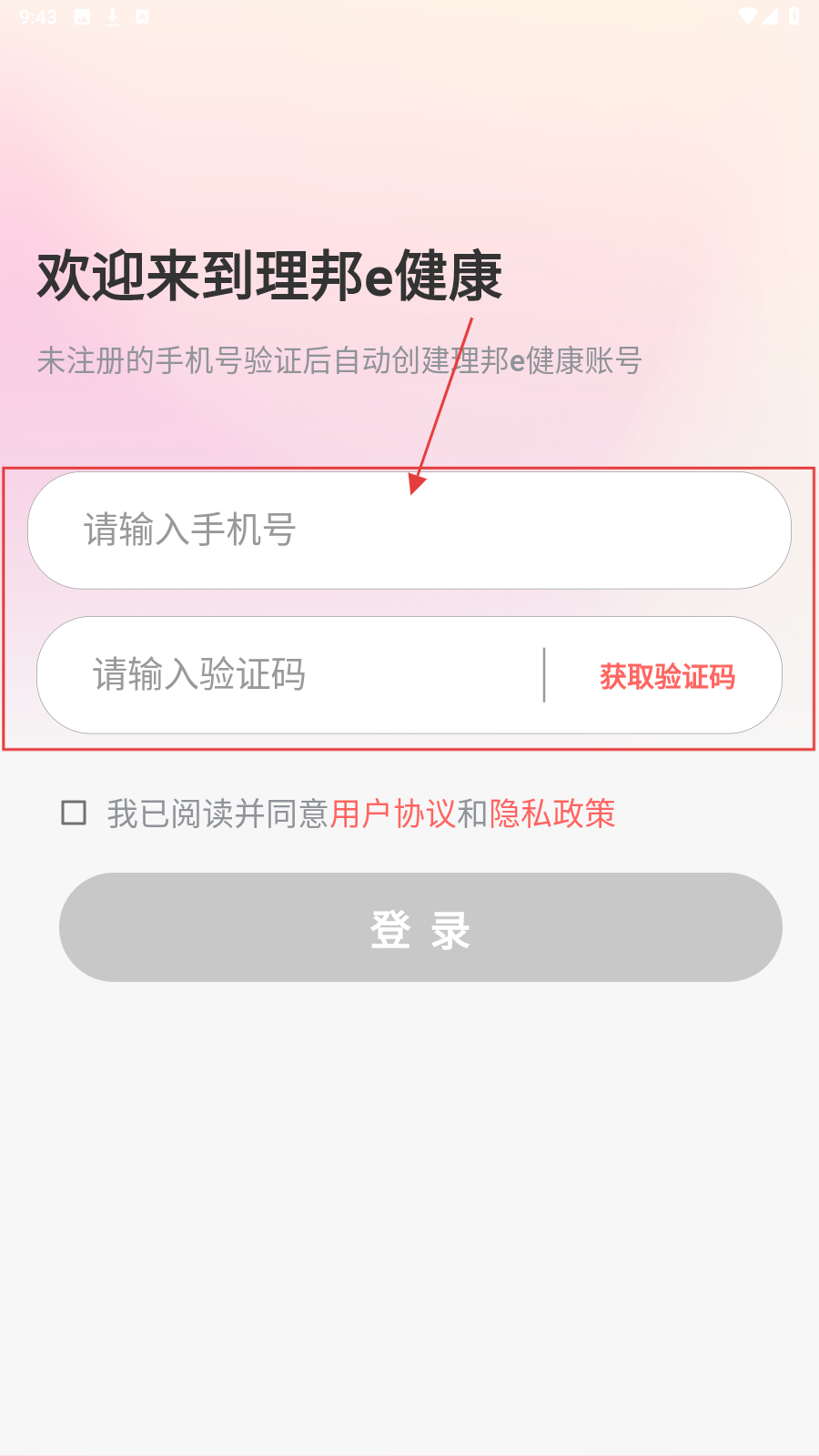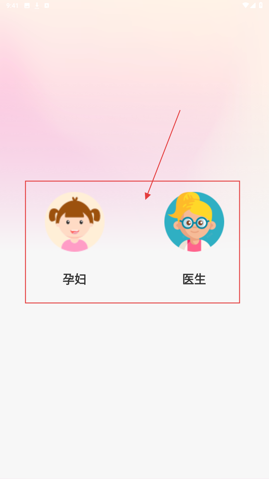 1、打开应用,选角色(孕妇/医生),进入“理邦e健康”登录页。