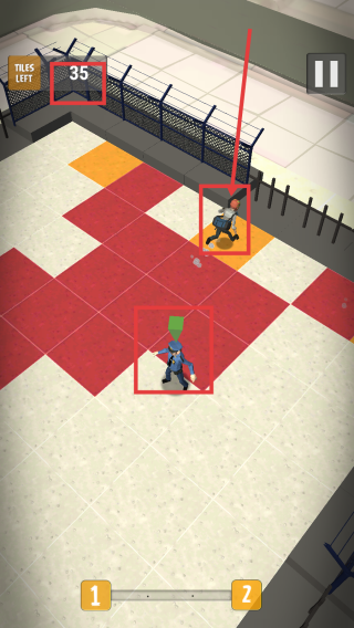 2、游戏过程中,留意左上角【TILESLEFT】剩余方块数量,合理规划行动,同时注意场景中的其他角色。