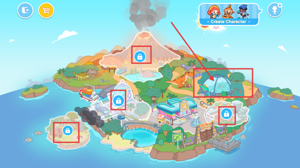 1、游戏初始,在地图界面选择未锁定区域(如箭头指向处)进入,开启游戏探索。