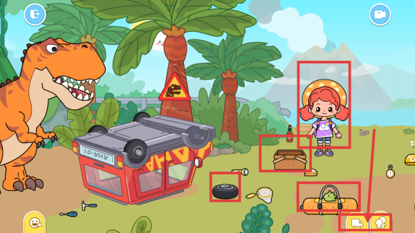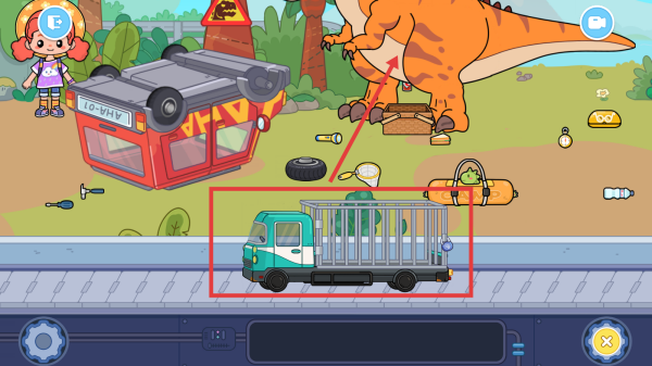 3、利用场景中的工具和元素,例如操作底部的卡车,可能用于运输恐龙等游戏内目标,推进游戏进程。