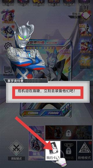 2、获得卡牌后,依据提示【危机迫在眉睫,立刻去装备他们吧】,进入【我的卡册】,对获得的卡牌角色进行装备。