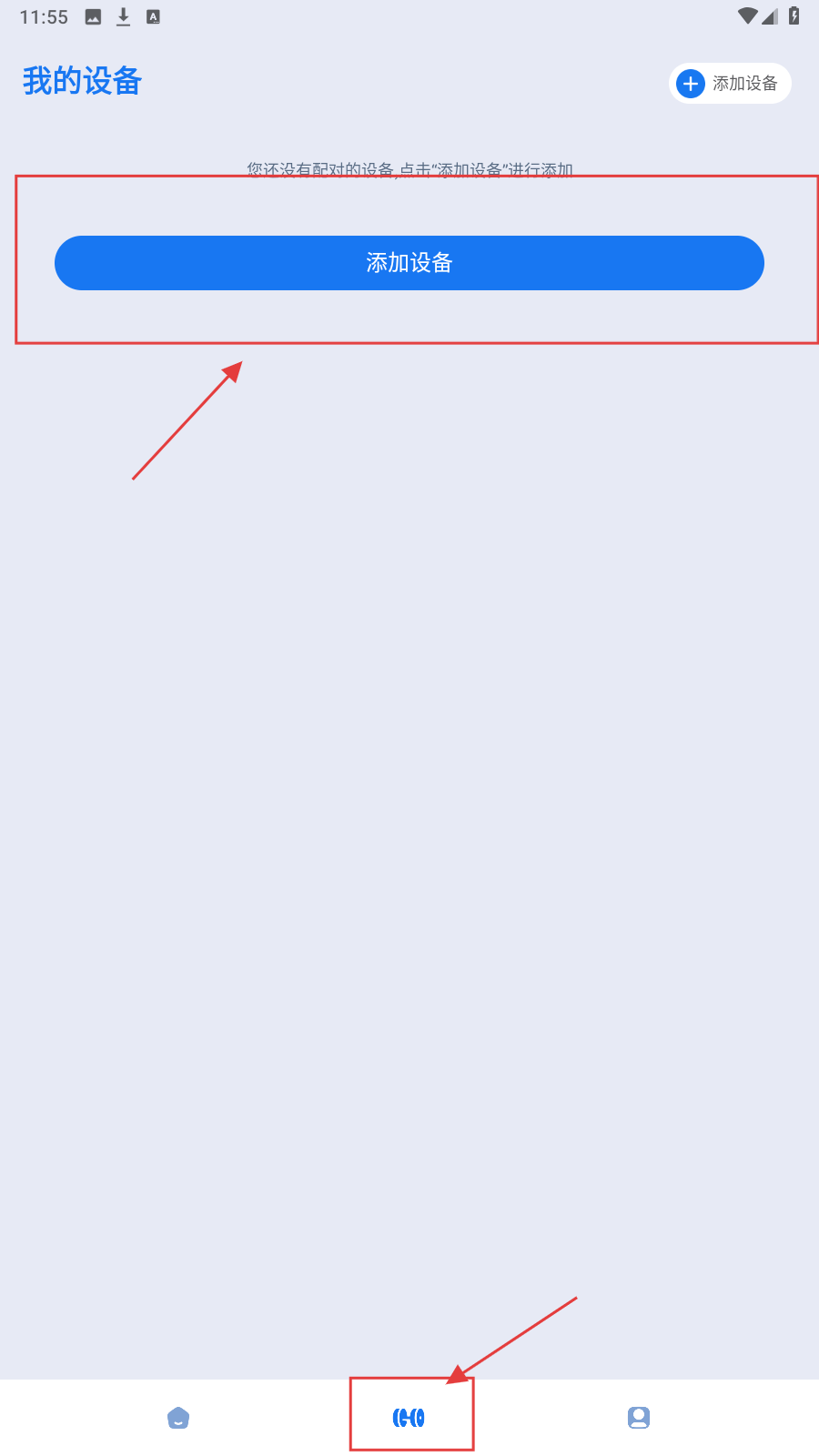 3、切换到【我的设备】页,点【添加设备】配对运动设备,通过底部【设备】图标进入此页操作。