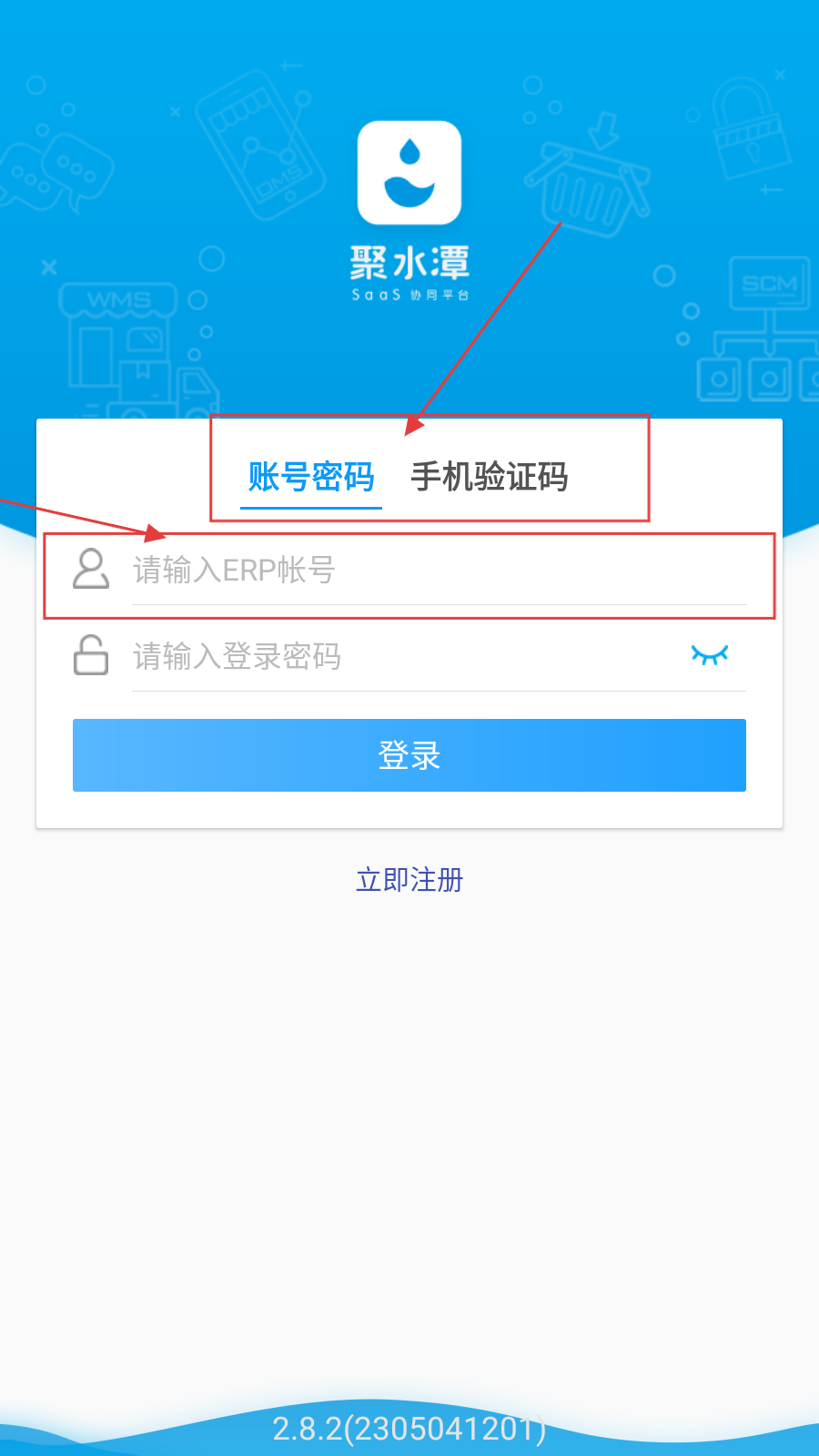 1、打开应用登录页,选【账号密码】登录方式,在【请输入ERP帐号】框填写账号。