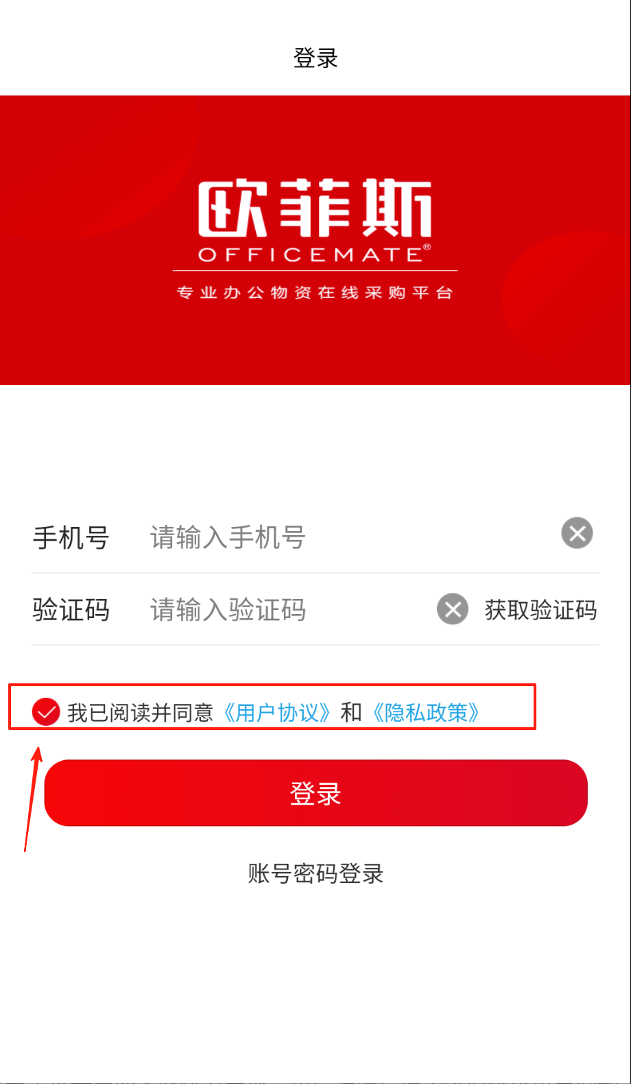 1、账号登录先输手机号码别漏数呀,点获取验证码收短信填进框,关键操作必须勾用户协议内容框解锁灰色登录键哦。