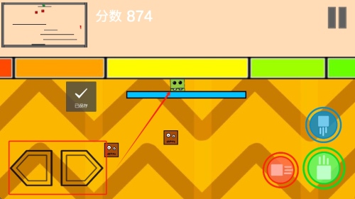 2、操控方块角色:滑动屏幕控制方块人移动,点击技能按钮释放攻击,利用走位躲避敌人技能与怪物攻击。