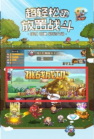 2、游戏主打“超轻松の放置战斗”,合理安排挂机,通过挂机收集资源、提升等级,轻松推进游戏进程,像“第5次蜘蛛女王”战斗可挂机完成。