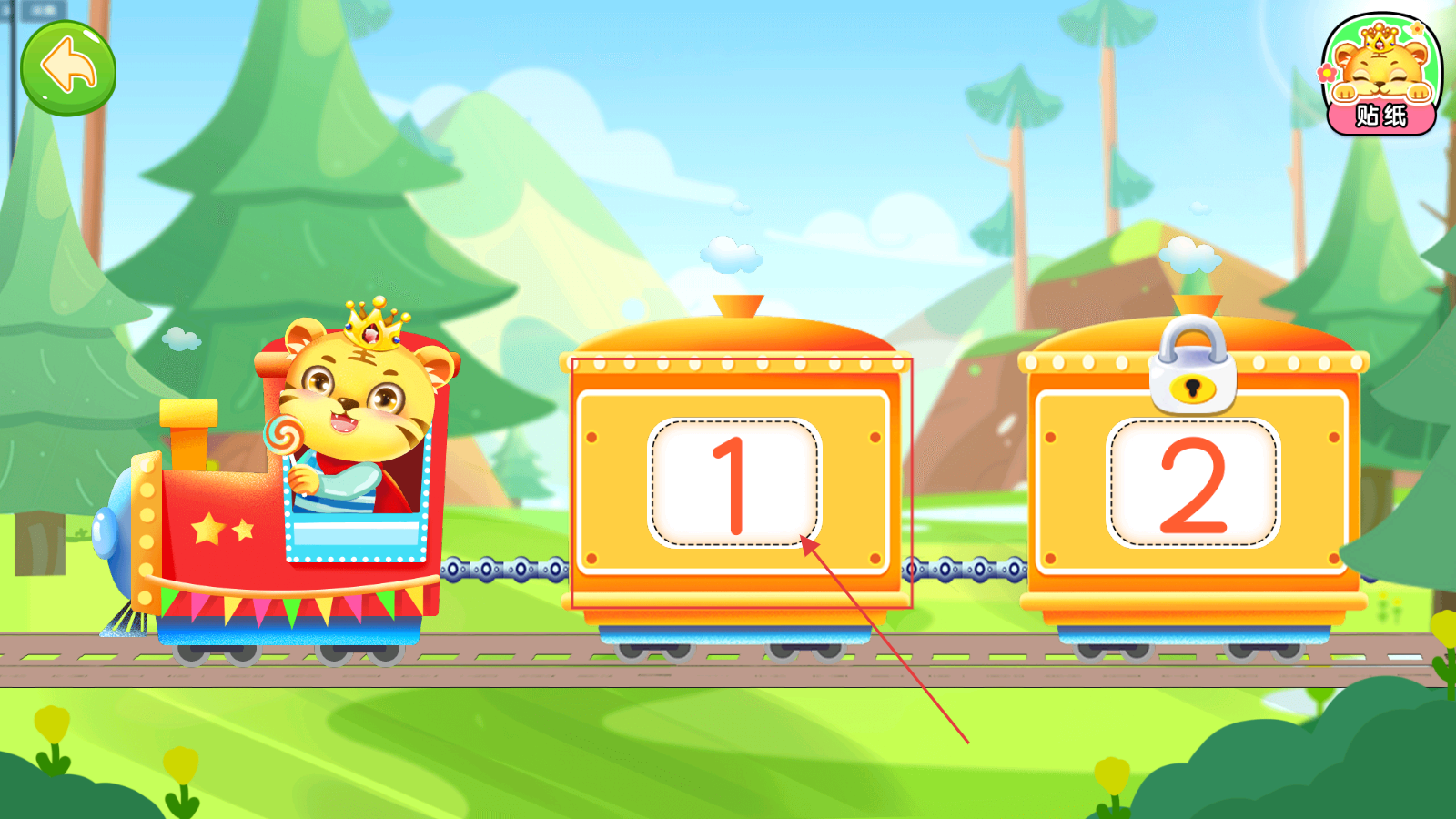 1、进入应用,点击小火车车厢“1”,进入数字认知场景。