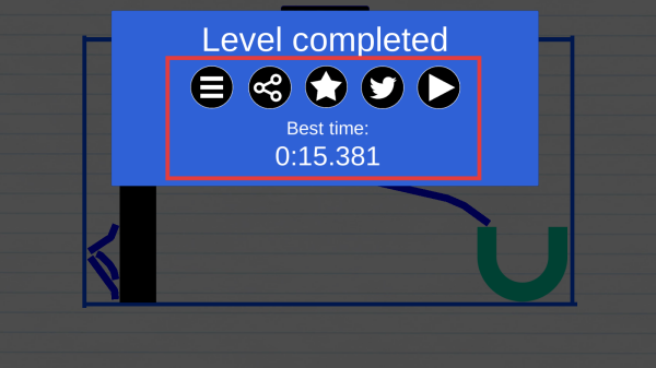 3、关卡完成后,界面显示“Levelcompleted”,可查看最佳时间,还能通过分享图标分享成绩,或点击播放图标回顾关卡。