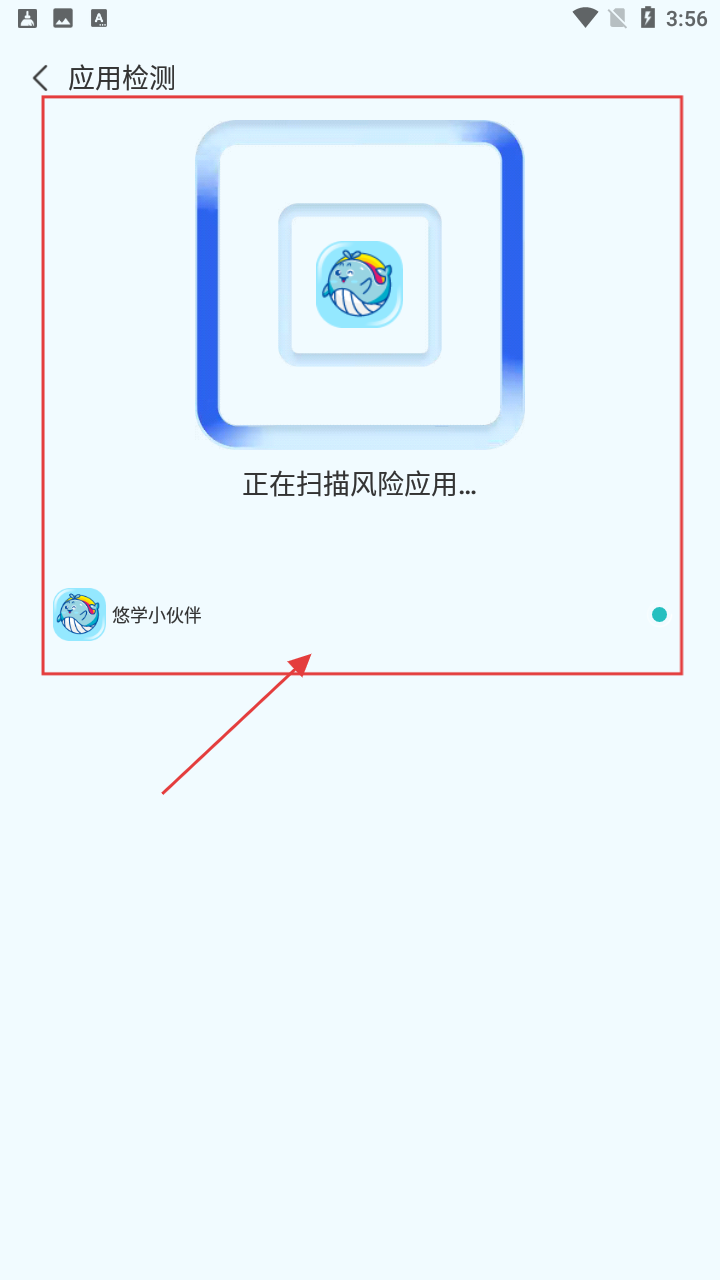 3、切换页面到【应用检测】,显示正在扫描风险应用,等待扫描完成查看风险应用检测结果。