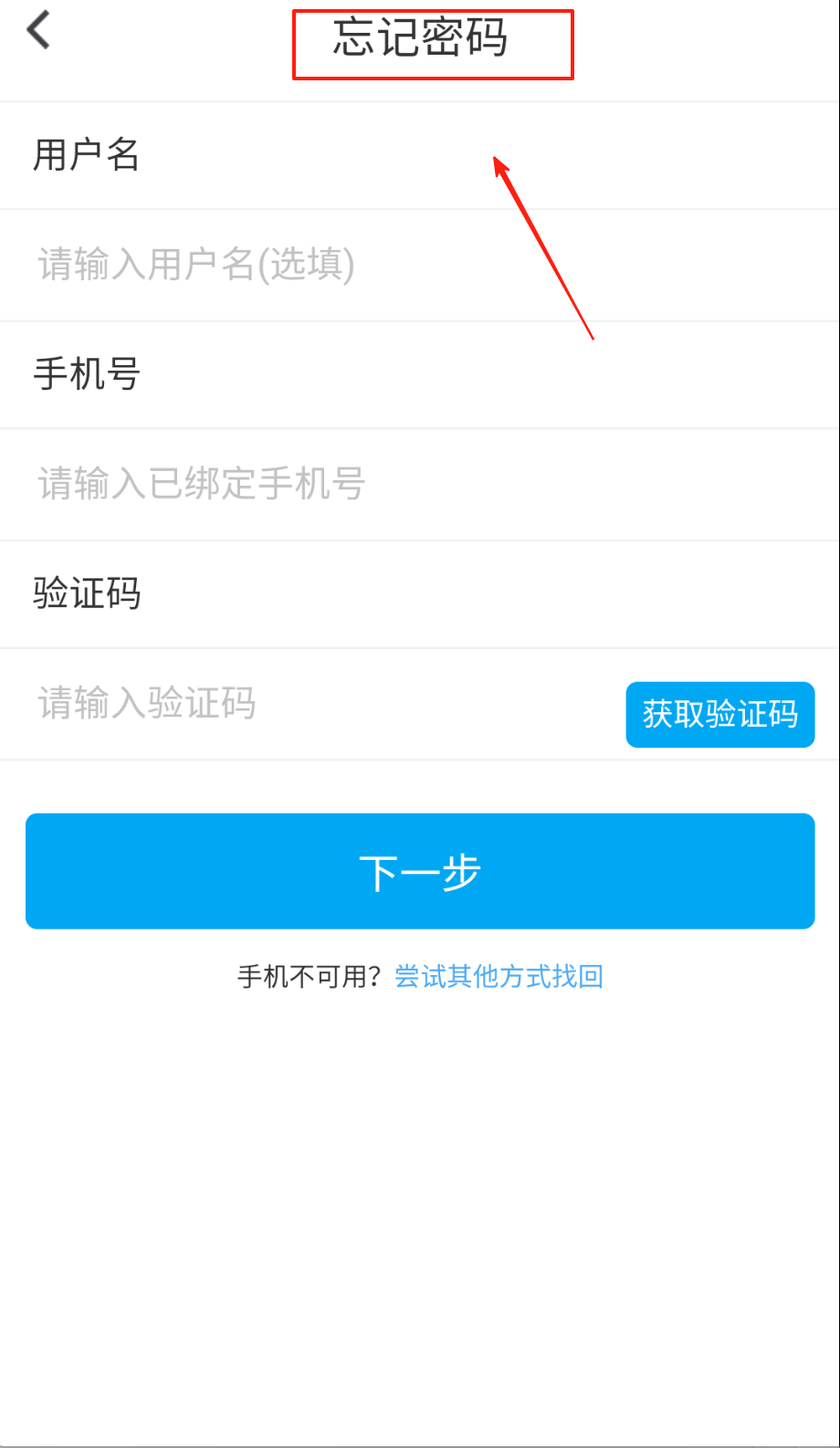 2、输用户名选填号码不慌,绑定的手机号收验证码别填错,点蓝“下一步”钮就重置啦。