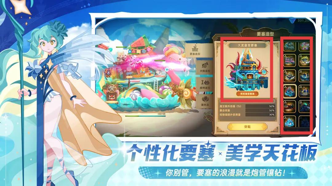 3、在要塞造型界面,浏览多种造型,根据属性加成和审美偏好选择穿戴,打造个性化要塞,增强游戏趣味性和角色实力。