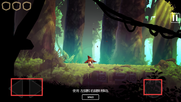 1、进入游戏场景后,依据屏幕提示,通过左下角的左右键控制角色移动,尽快熟悉基本操作。