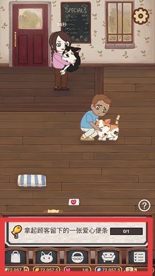 3、成长体系:提升猫咪能力等级解锁新互动模式,合理安排资源投入加速咖啡厅规模扩展获得正向成长循环。