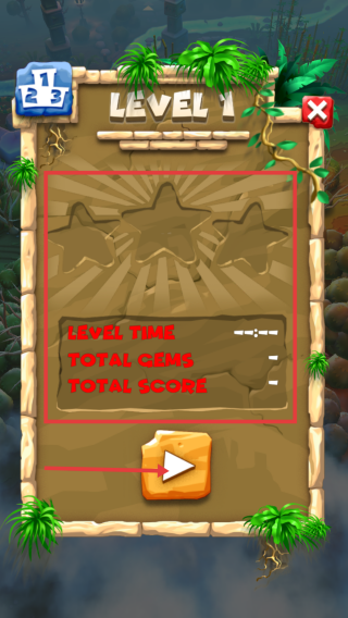 1、在关卡开始界面,留意“LEVELTIME”、“TOTALGEMS”、“TOTALSCORE”等信息,明确关卡目标。点击下方播放按钮进入关卡。