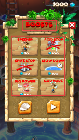 2、在“BOOSTS”界面,了解各类道具效果和价格,如“SPEEDER”(加速)售价50宝石等。根据宝石数量和关卡需求,合理购买道具助力通关。