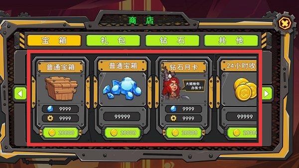 3、进入“商店”界面,了解“宝箱”“礼包”“钻石月卡”“24小时收益”等商品信息和价格。根据自身资源储备,合理购买所需商品。