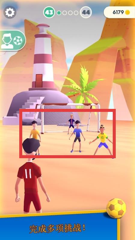 1、进入游戏场景,关注屏幕上方显示的数值,金币数量等。在类似沙滩足球场景中,观察场上球员站位,寻找合适时机射门。