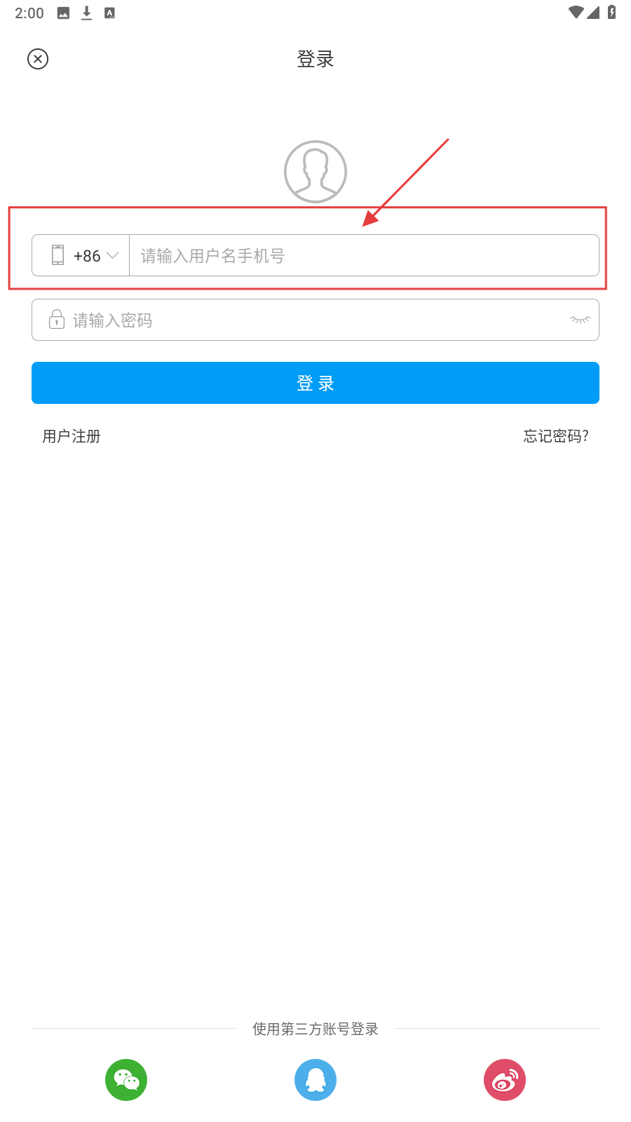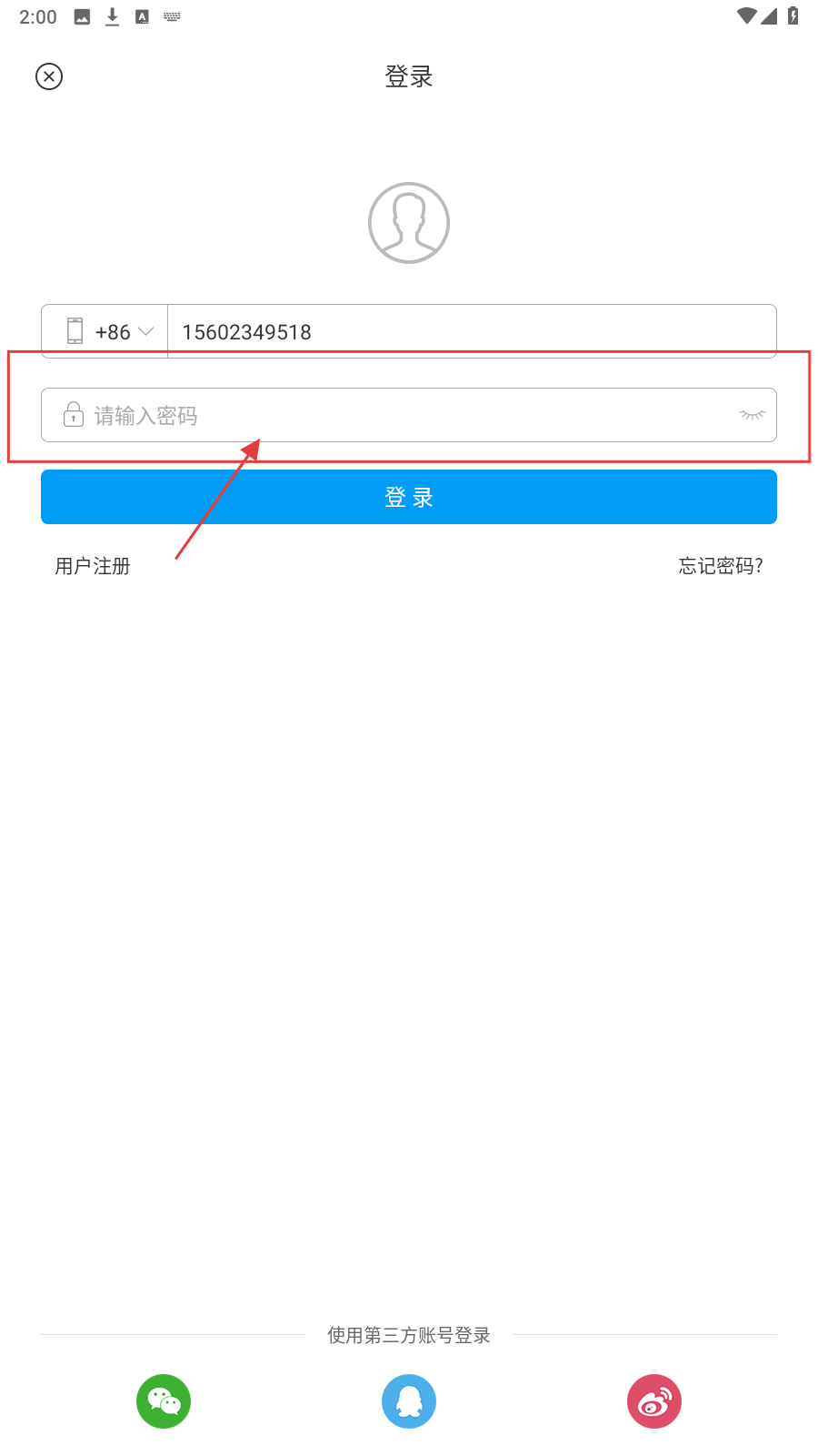 1、打开登录页,在【请输入用户名手机号】框,填入手机号码。