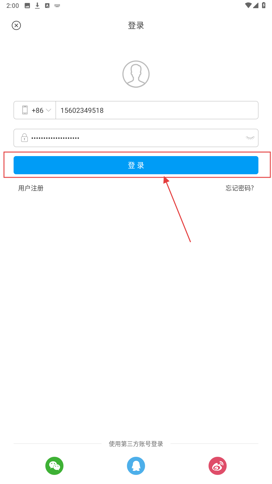 3、点击蓝色【登录】按钮,完成账号登录操作。