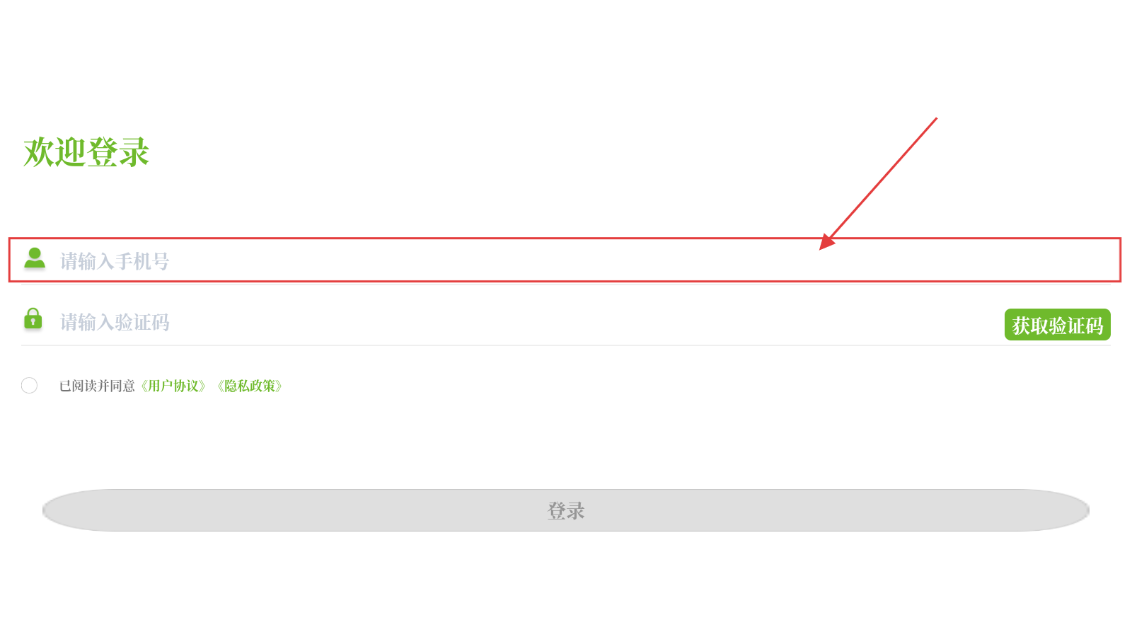 1、打开登录页,在【请输入手机号】框,填入手机号码。