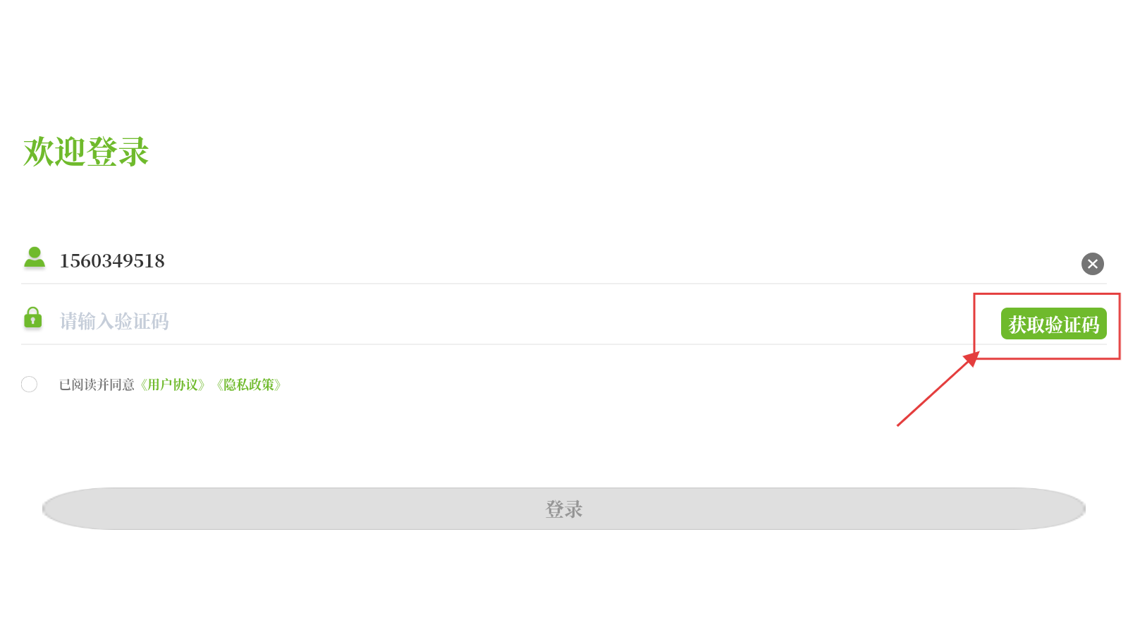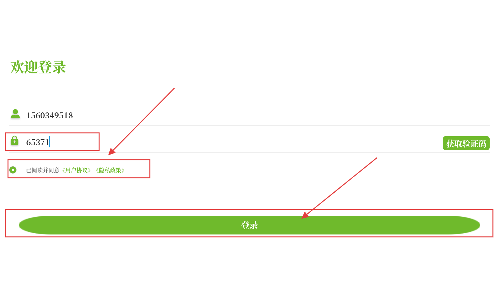 3、勾选【已阅读并同意《用户协议》《隐私政策》】,点击绿色【登录】按钮完成登录。