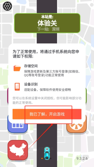 1、了解权限:阅读并同意应用所需的权限,如存储空间和设备识别,然后点击“我已了解,开启游戏”。