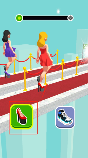2、高跟鞋收集机制:舞台上散落各式高跟鞋,收集后能增加角色高度,不仅提升行走速度,还可增强消除障碍的能力。