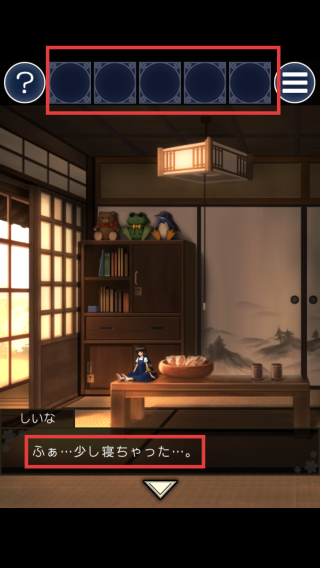1、游戏开始,留意屏幕上方的物品栏,初始为空。通过与场景互动推进剧情,如听到角色说“ふぁ…少し寝ちゃった…”。