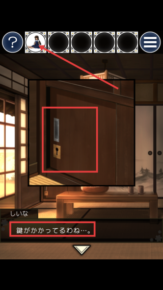 2、关注场景中的线索,当角色提示“鍵がかかってるわね…”,可知需要寻找钥匙。可点击屏幕探索场景,收集物品放入物品栏。