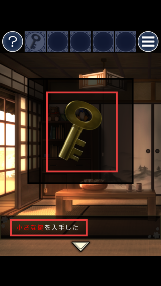 3、成功找到钥匙,看到提示“小さな鍵を入手した”,将钥匙放入物品栏。后续可使用物品栏中的物品解开谜题、推进游戏。