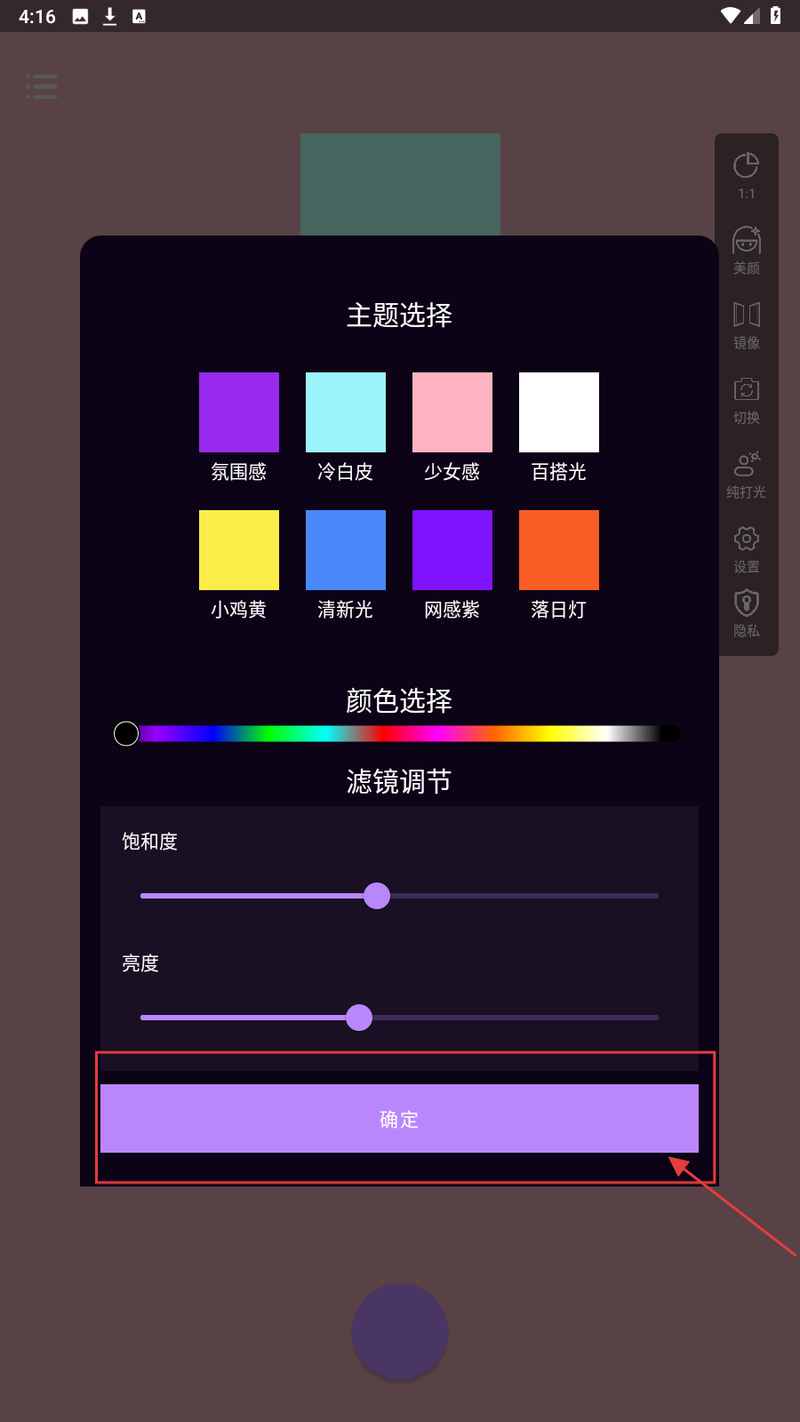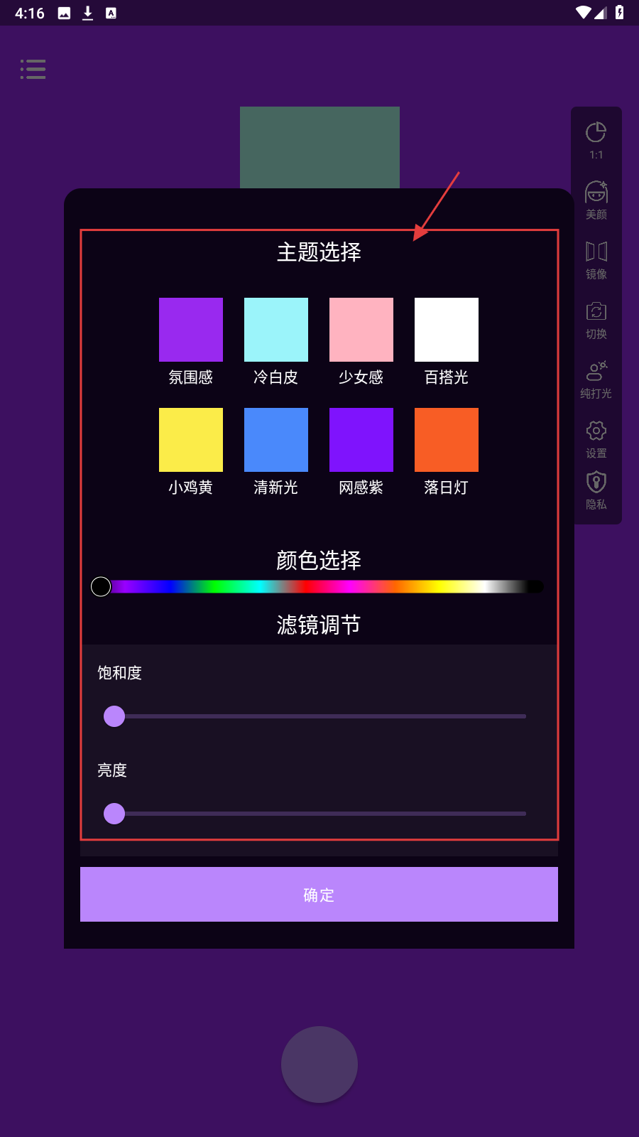 3、点【确定】应用设置,即可完成主题及滤镜调节。