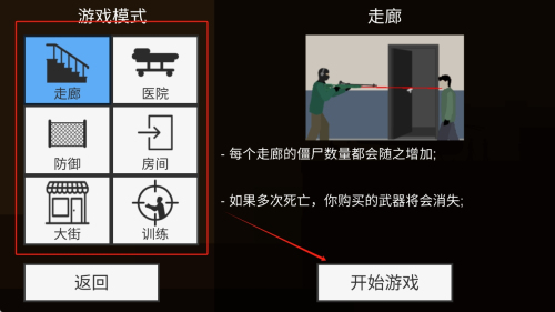 2、如何选择游戏模式?在游戏模式选择界面,点击不同的模式图标,如“走廊”或“医院”,选择你想要挑战的模式。