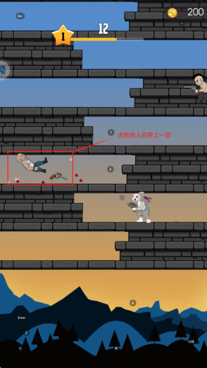 2、使用武器闯关:操纵角色使用武器闯关,遇到敌人时瞄准射击,注意躲避敌人的攻击,保持自身安全。