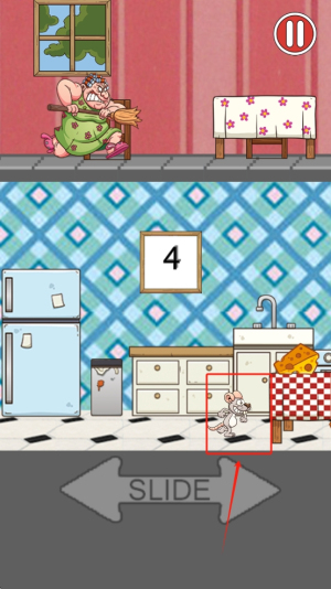 2、操作角色:通过滑动屏幕来控制老鼠在厨房中的移动,收集奶酪。