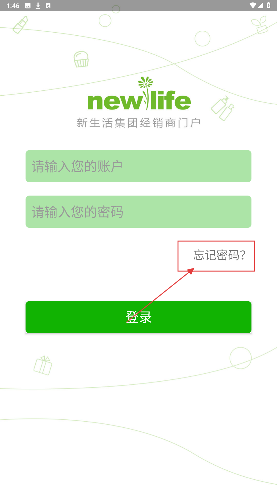 1、打开应用登录页,点击【忘记密码?】,进入密码找回页面。