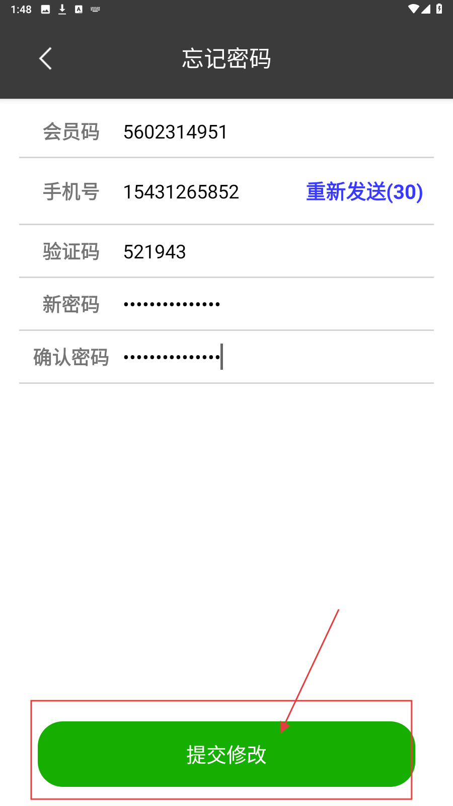 4、完成上述所有信息的填写和设置后,点击【提交修改】按钮,即可完成密码重置。