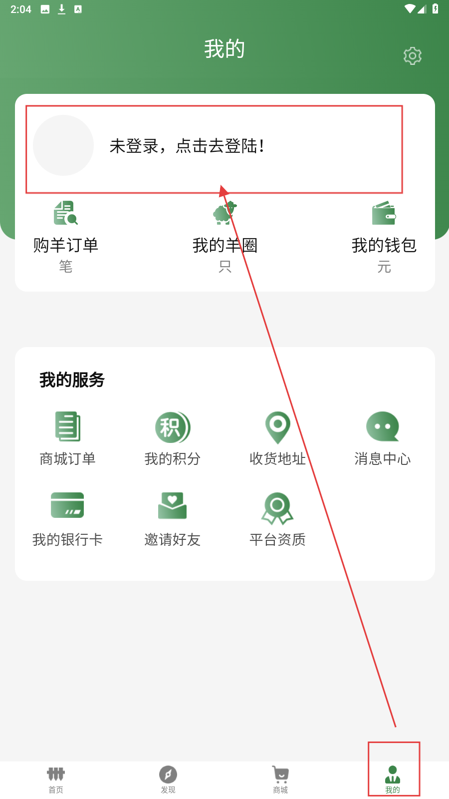 1、打开APP,点击底部【我的】,看到【未登录,点击去登陆!】,点击进入登录页。