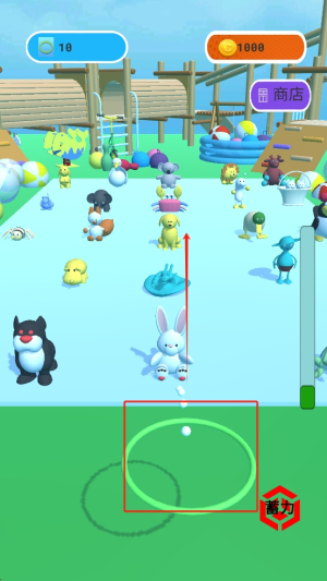 2、掌握投掷技巧:拿起手中的套圈,通过滑动屏幕控制投掷力度与角度,松开手指将套圈抛出,尝试套中远处的目标物品。