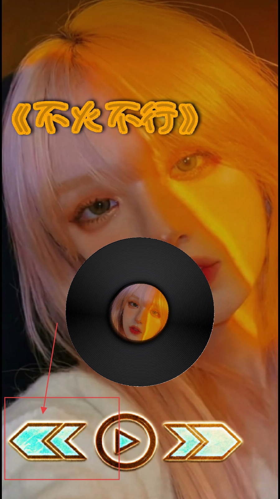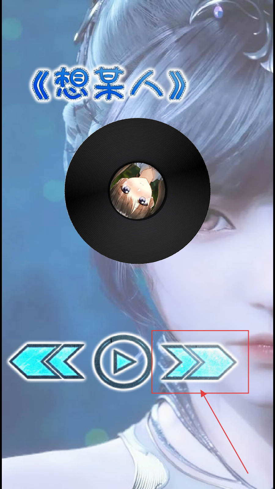 2、进入音乐播放界面,此时可以看到正在播放的歌曲,界面以黑胶唱片样式呈现,点击下方右侧图标进行切换下一首歌曲。