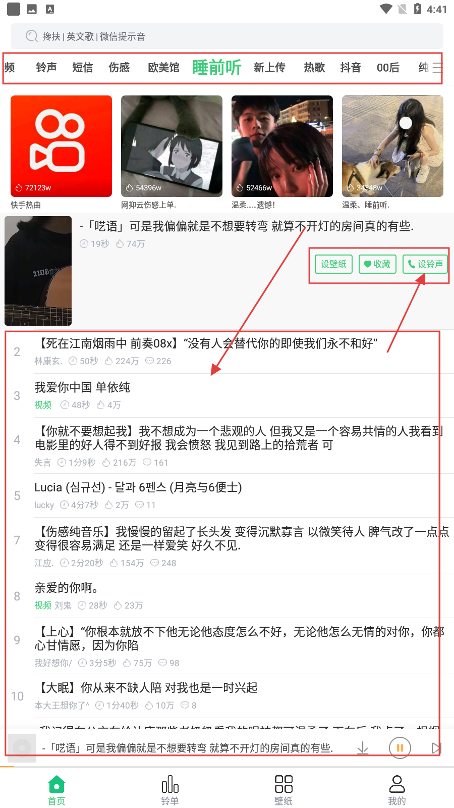 5、紧跟潮流趋势:整合时下热门、最新百万铃声,轻松一键设置,让用户时刻紧跟当下潮流,不错过任何热门铃声。