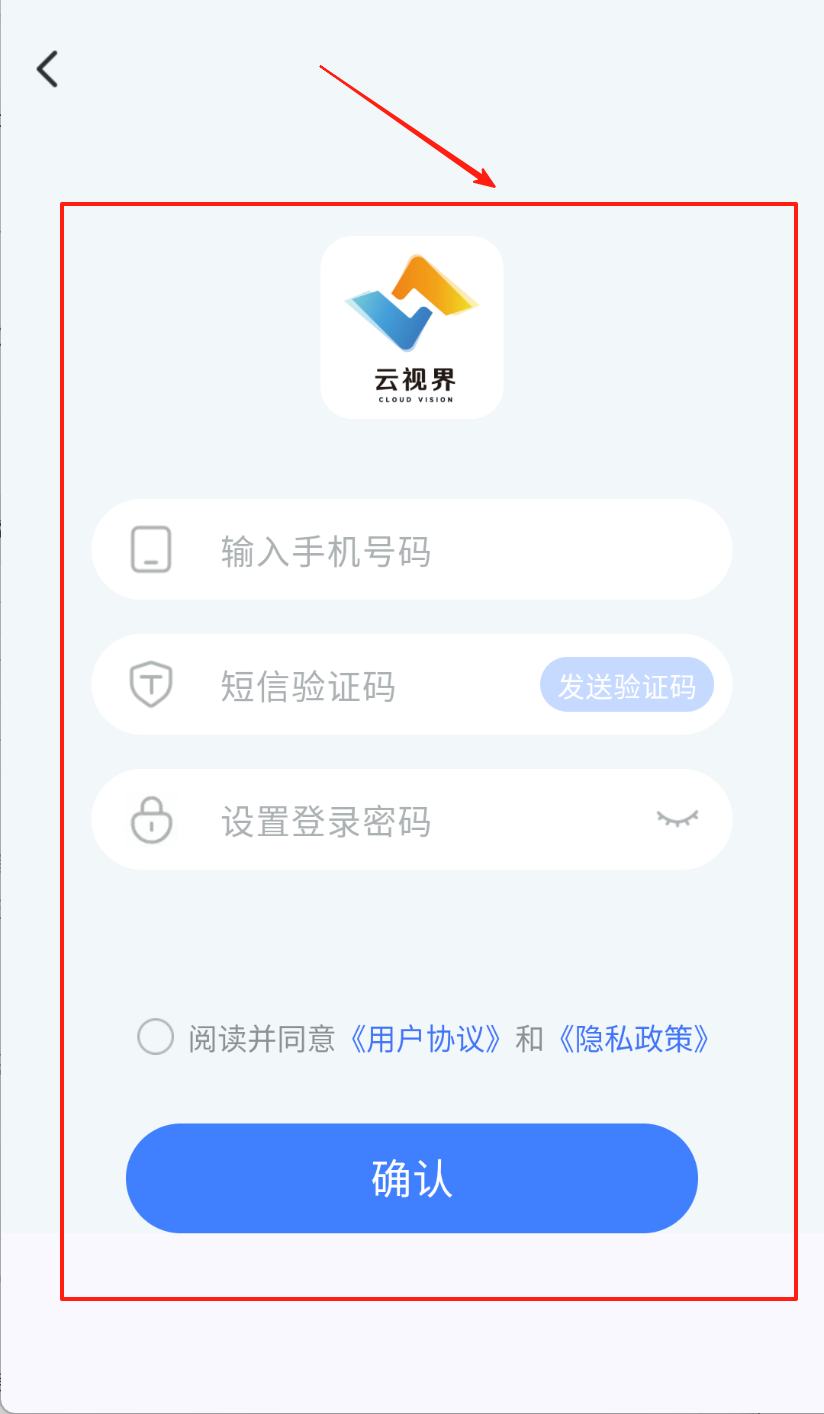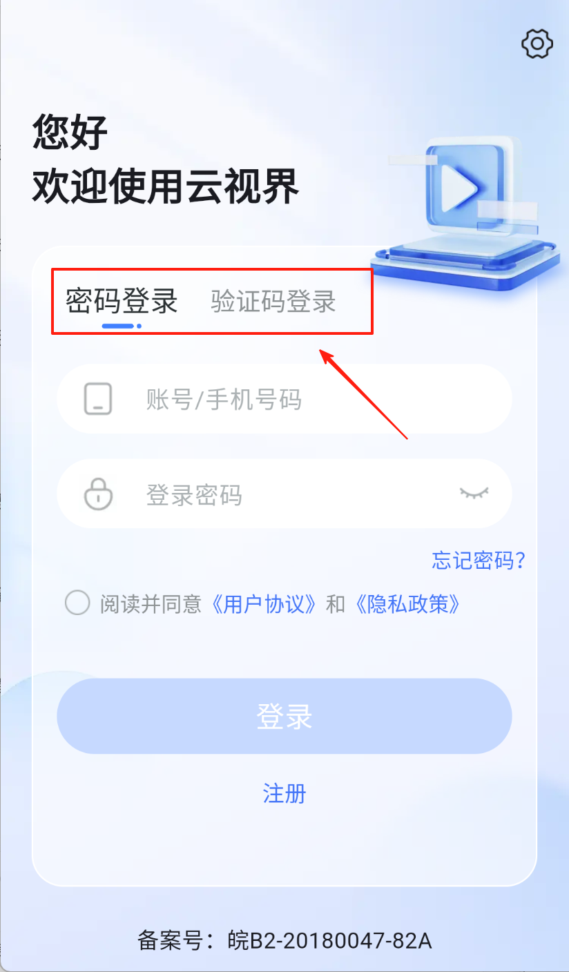 1、打开应用看顶部"云视界"标志,在蓝色背景的登录页,选密码或验证码登录方式,输入框别填错账号密码哦。
