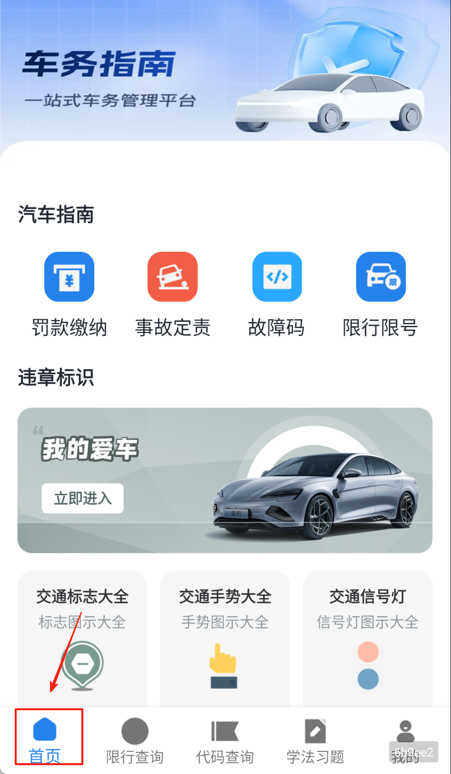 1、首页输入车牌号或扫描行驶证,红点标注新上线地方交规,收藏功能标记常用查询,定位权限需开启哦。
