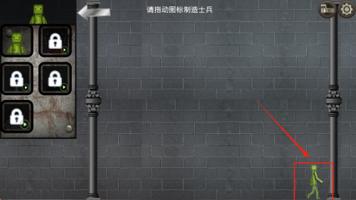 1、制造士兵:拖动左侧的士兵图标到指定位置,以制造士兵进行防御。如图所示,将士兵图标拖动到地图上合适的位置。
