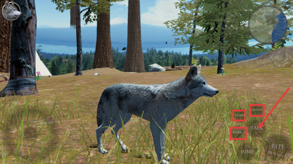 3、利用屏幕右下角的【HOWL】【GROWL】【BARK】等指令与环境互动。