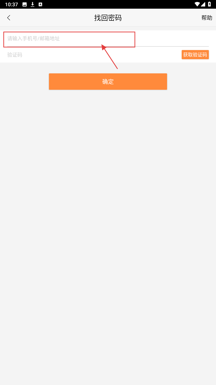 2、进入找回密码页面,在输入框中输入手机号码或邮箱地址。