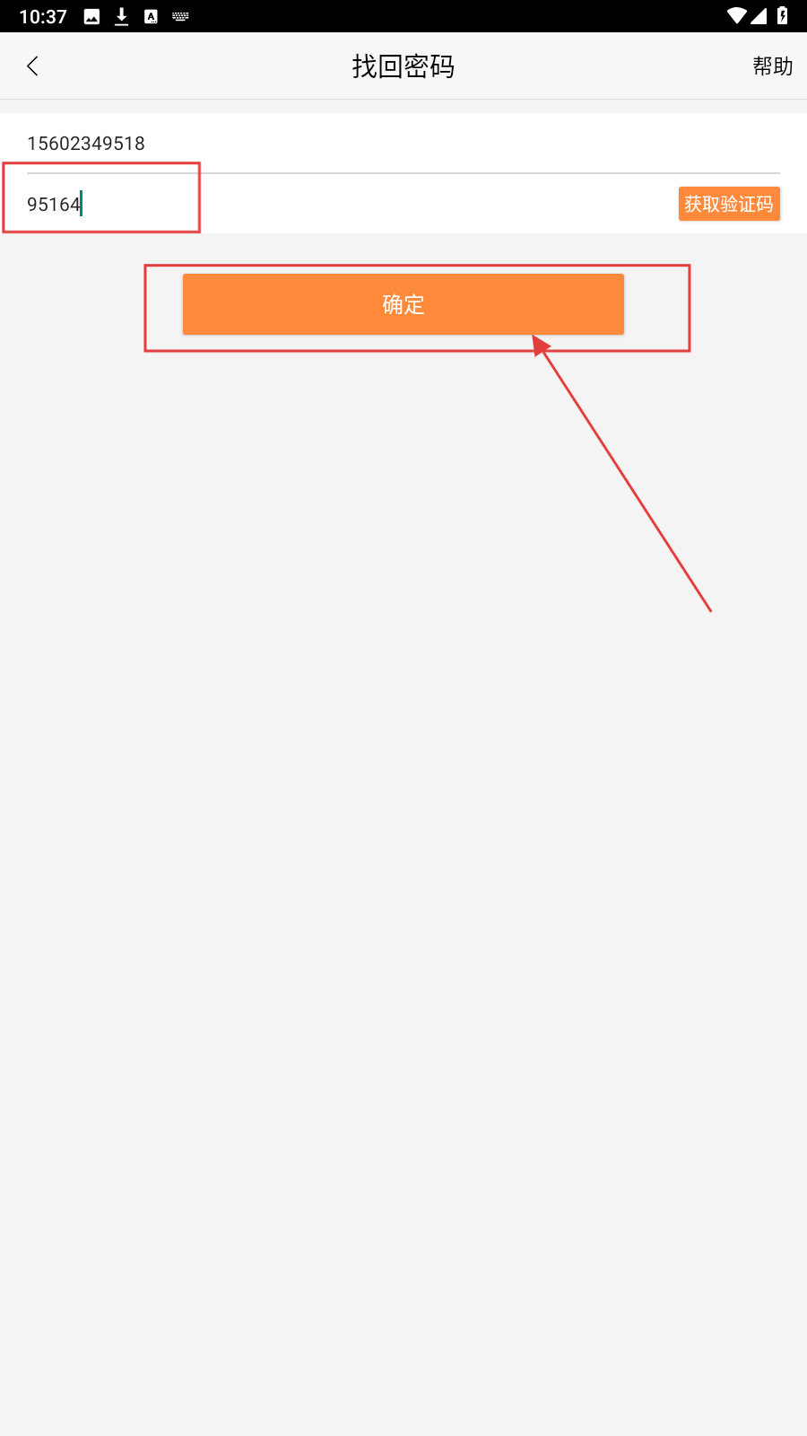4、收到验证码后,在输入框中输入验证码,点击【确定】,即可完成密码找回。